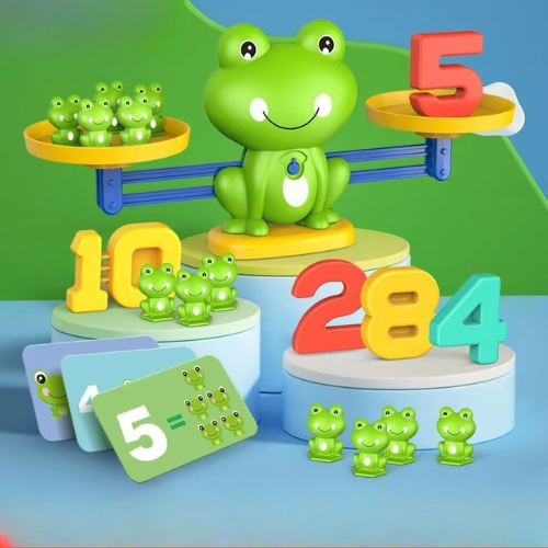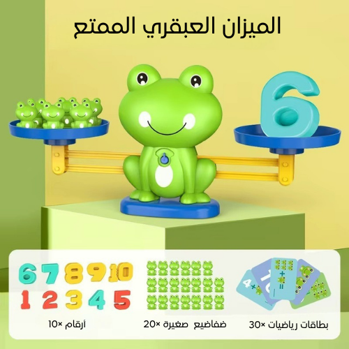 كل رقم يساوي وزن نفس عدد الضفادع الصغيرة. اللعبة تخليه يركز عشان يوازن الجانبين، وهذا ينمي مهارات التفكير المنطقي وحل المشكلات من عمر صغير